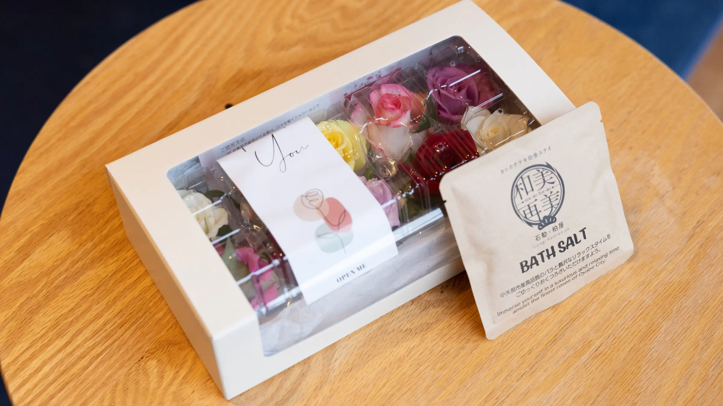 ・鯉の餌やり(5月~10月) ・国産線香花火(5月~10月) ・小矢部バラフットバス(11月~4月) ・小矢部の生バラ風呂セット(富山湾鮨付プランのみ) |